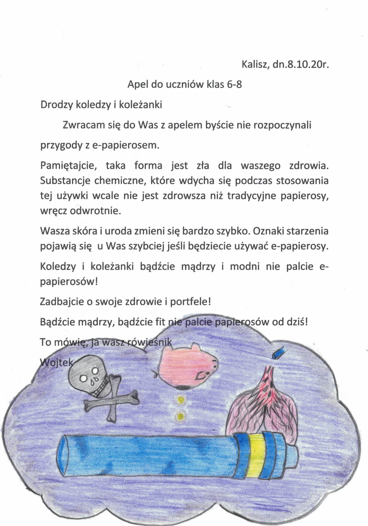 Zadaniem uczniów klas VI szkół podstawowych, którzy zostali zaproszeni do konkursu, było napisanie apelu zachęcająco do rzucenia palenia. W etapie powiatowym, konkurs odbywa się w całym województwie, zwyciężyli