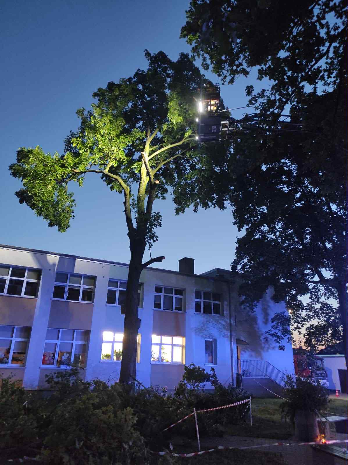 W miejscowości Morawin na terenie szkoły podstawowej doszło do ułamania się gałęzi, która spadła na 56-letniego mężczyznę oraz na dwie 9-letnie dziewczynki. Ratownicy po przyjeździe udzielili im kwalifikowanej pierwszej pomocy i przekazali te osoby Zespołowi Ratownictwa Medycznego.