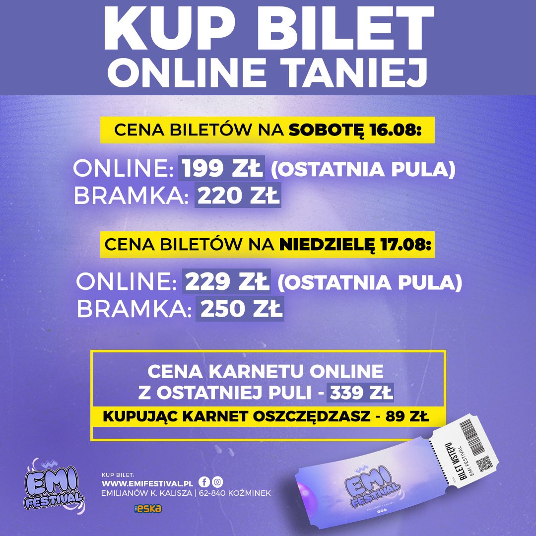 Do festiwalu w Emilianowie zostały już tylko dwa dni – bilety wciąż można kupić online w promocyjnych cenach, oszczędzając nawet kilkadziesiąt złotych w porównaniu do zakupu przy bramce. Ostatnia pula karnetów i wejściówek na poszczególne dni szybko się wyprzedaje, więc warto się pospieszyć.