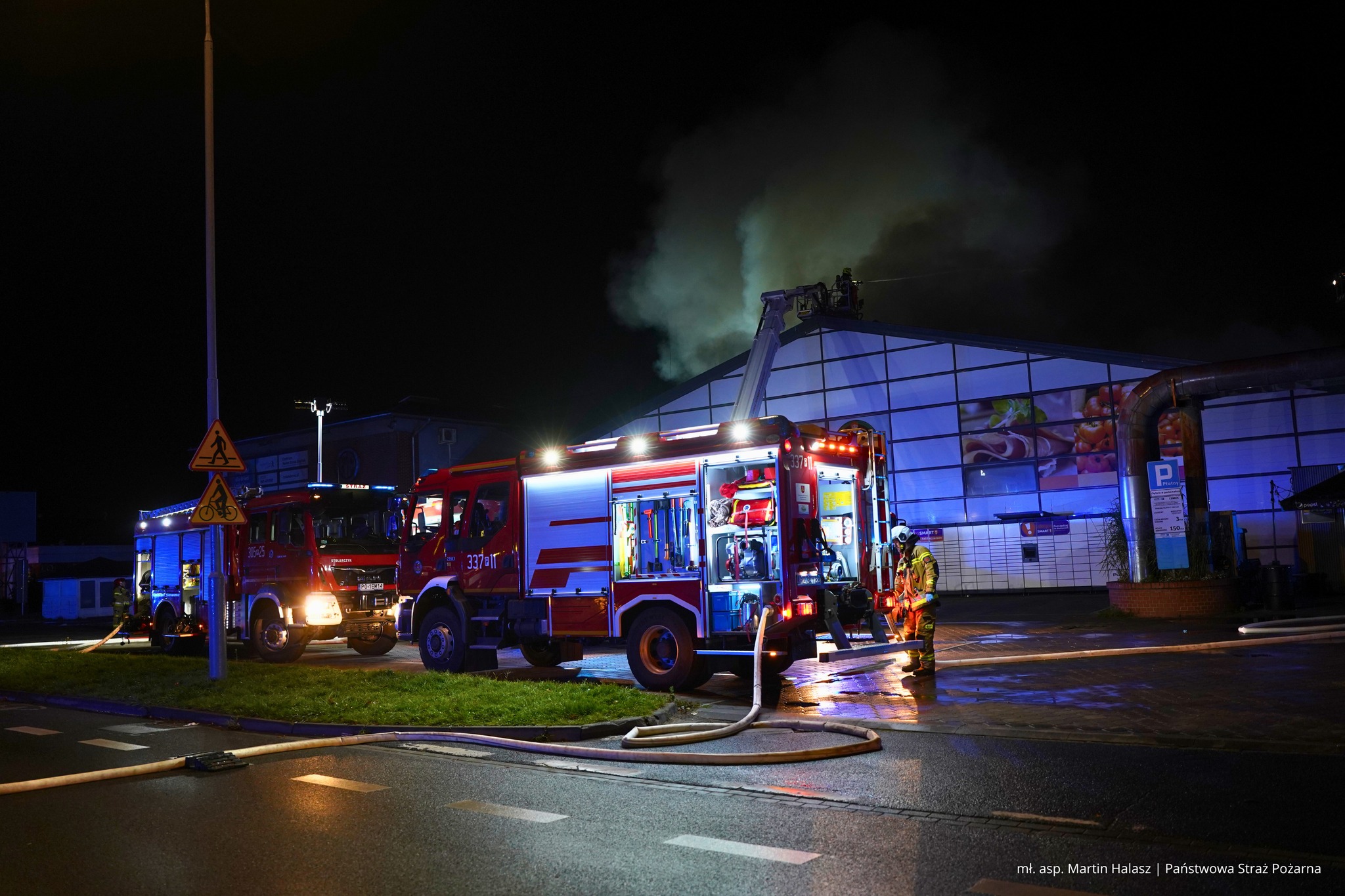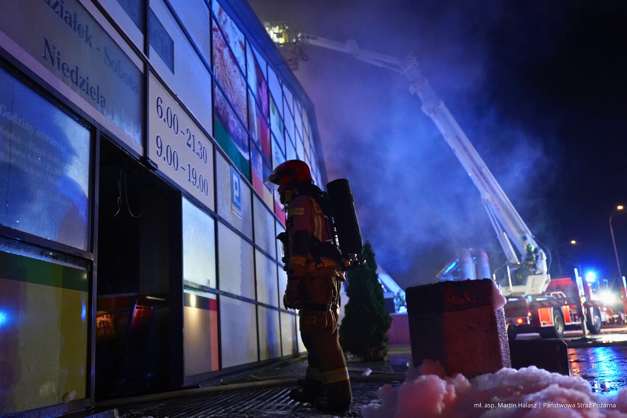 Działania ratownicze obejmują kompleks budynków usługowych, o łącznej pow. ok. 4800 metrów kwadratowych. Strażacy obronili 1/3 powierzchni kompleksu. Na miejscu działań pracuje 104 strażaków PSP i OSP, czyli 28 zastępów, w tym 3 drony – informowała około 1:00 w nocy PSP.