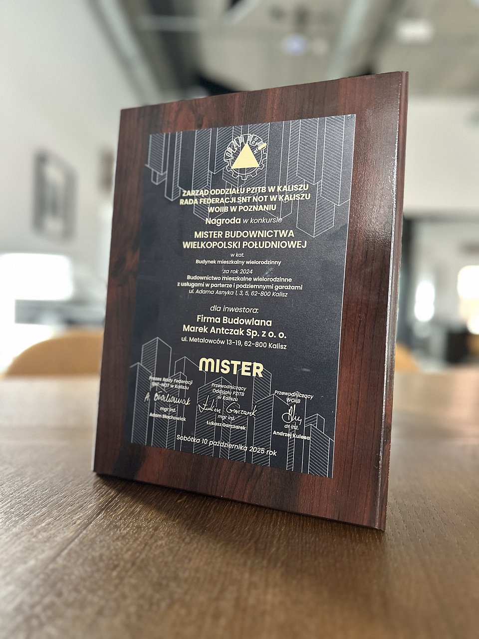 Efekt współpracy FB Antczak z ABP Podonowscy doceniła kapituła konkursu Mister Budownictwa. Jurorami są tam członkowie Polskiego Związku Inżynierów i Techników Budownictwa. Kapituła co roku ocenia zgłoszone inwestycje pod kątem estetyki i funkcjonalności, zastosowanych rozwiązań technicznych i technologicznych.