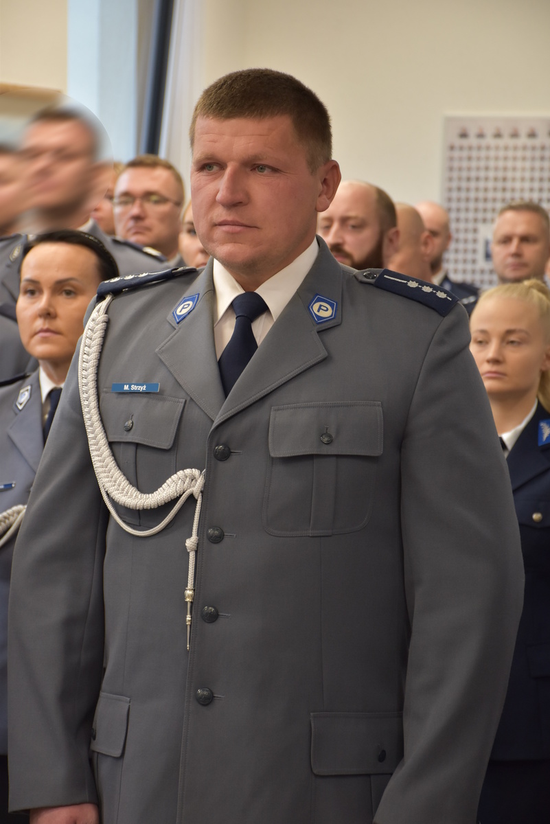 Mł. insp. Roman Bruss wręczając rozkazy, akty mianowania i pochwały policjantom złożył wszystkim serdeczne gratulacje. Podkreślił, też że wyróżnienia te są przede wszystkim efektem sumiennej i rzetelnej służby na rzecz bezpieczeństwa mieszkańców miasta i powiatu. Komendant zaznaczył, że codzienna służba każdego z funkcjonariuszy składa się na sukces Policji jako całej formacji. Na zakończenie życzył wszystkim policjantom satysfakcji z pełnionej służby.