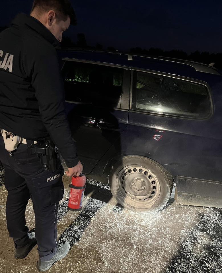 5 listopada policjanci z Turku zauważyli na jeden z patrolowanych przez siebie dróg volkswagena Passata, spod którego wydobywa się ogień i dym. Pojawił się on nad tylnym lewym kołem, co mogło sugerować niebezpieczną awarię układu hamulcowego. Patrol zatrzymał pojazd.