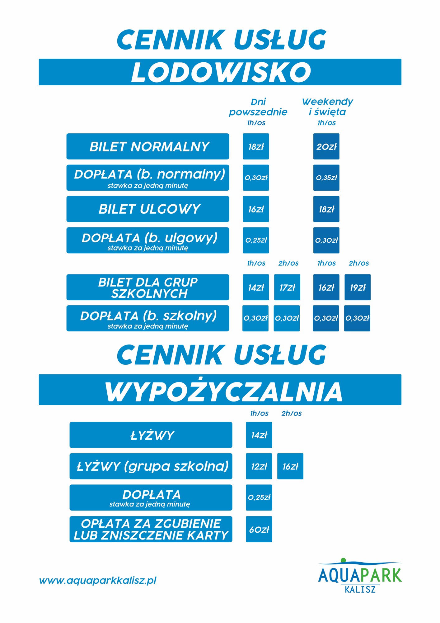 Wraz z rozpoczęciem sezonu Aquapark Kalisz wprowadził nowy cennik. W dni powszednie bilet normalny kosztuje 18 zł, a ulgowy 16 zł. W weekendy i święta – odpowiednio 20 zł i 18 zł. Dla grup szkolnych przygotowano specjalne ceny – od 14 zł za godzinę w dni robocze do 19 zł w weekendy.