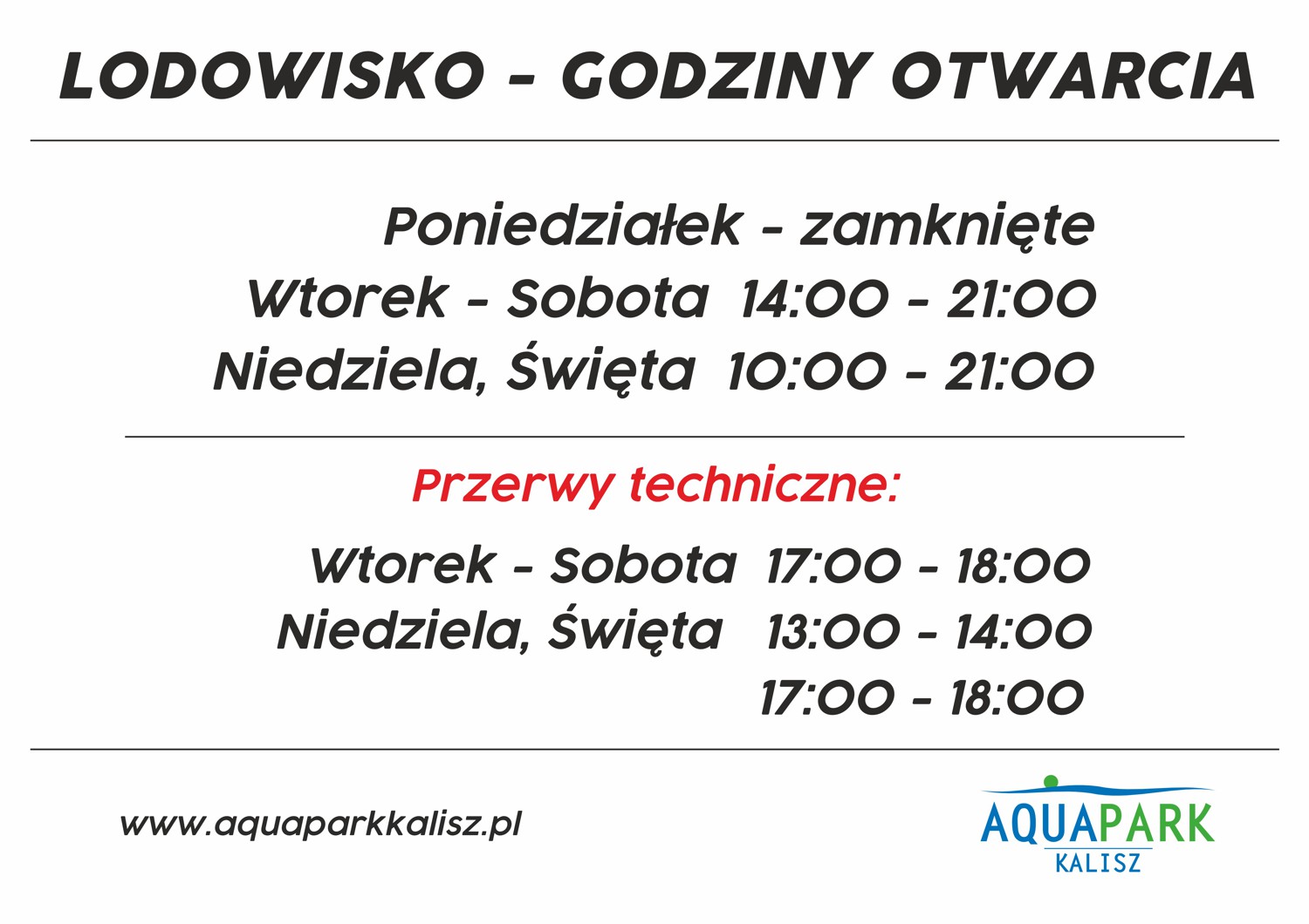 Lodowisko będzie czynne od wtorku do soboty w godz. 14:00–21:00, a w niedziele i święta od 10:00 do 21:00. W poniedziałki obiekt będzie nieczynny.