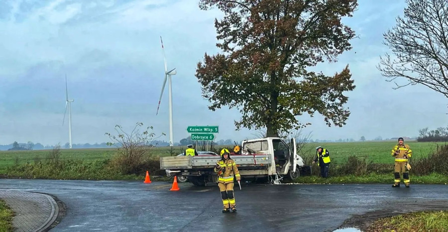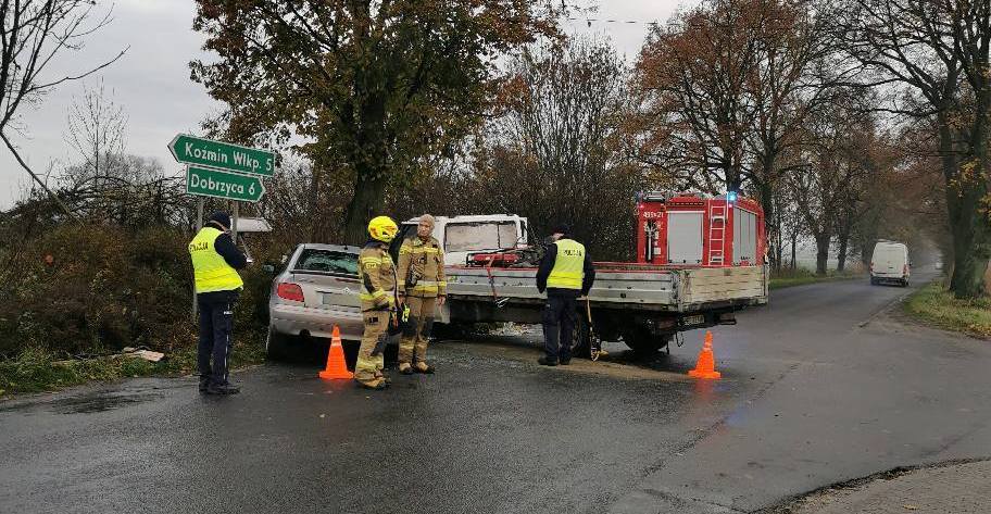 Do zdarzenia doszło dzisiaj, w środę 12 listopada, na drodze prowadzącej z Dobrzycy w kierunku Koźmina Wielkopolskiego doszło do poważnie wyglądającego wypadku. Zderzyły się tam dwa pojazdy – dostawczy ford oraz osobowy citroen.