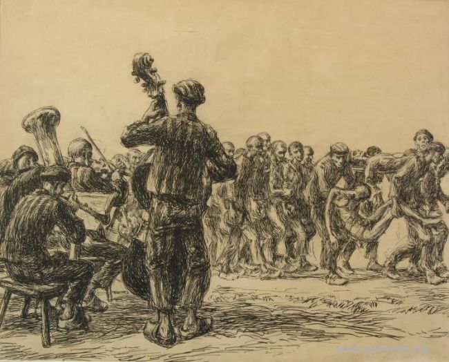 Powrót z pracy z cyklu „Dzień więźnia”, Autor: Mieczysław Kościelniak, Zbiory Państwowego Muzeum Auschwitz-Birkenau