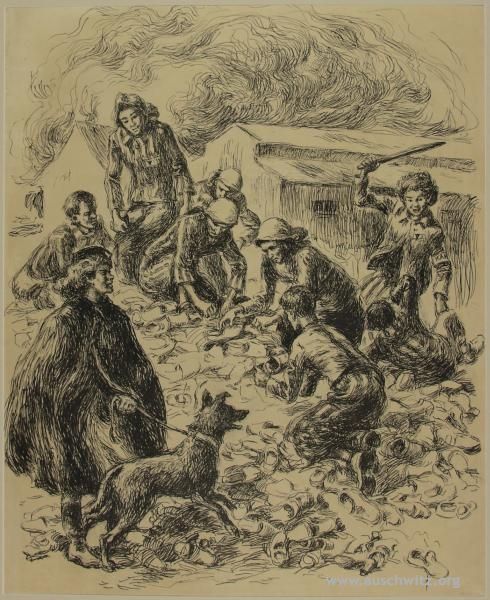 Praca – sortowanie butów z cyklu „Dzień więźniarki”, Autor: Mieczysław Kościelniak,