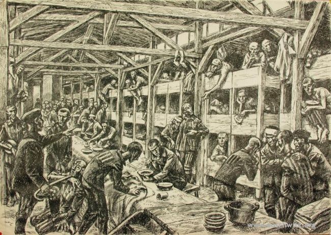 Wnętrze baraku męskiego w Birkenau, Autor: Mieczysław Kościelniak, Zbiory Państwowego Muzeum Auschwitz-Birkenau