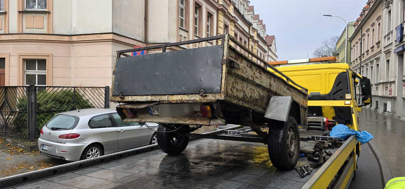Kierujący Renault Trafic z przyczepą zatrzymał się, aby przepuścić przechodnia wchodzącego na pasy. Jadący za nim kierowca Toyoty nie zachował jednak odpowiedniego odstępu i wjechał w tył przyczepy.