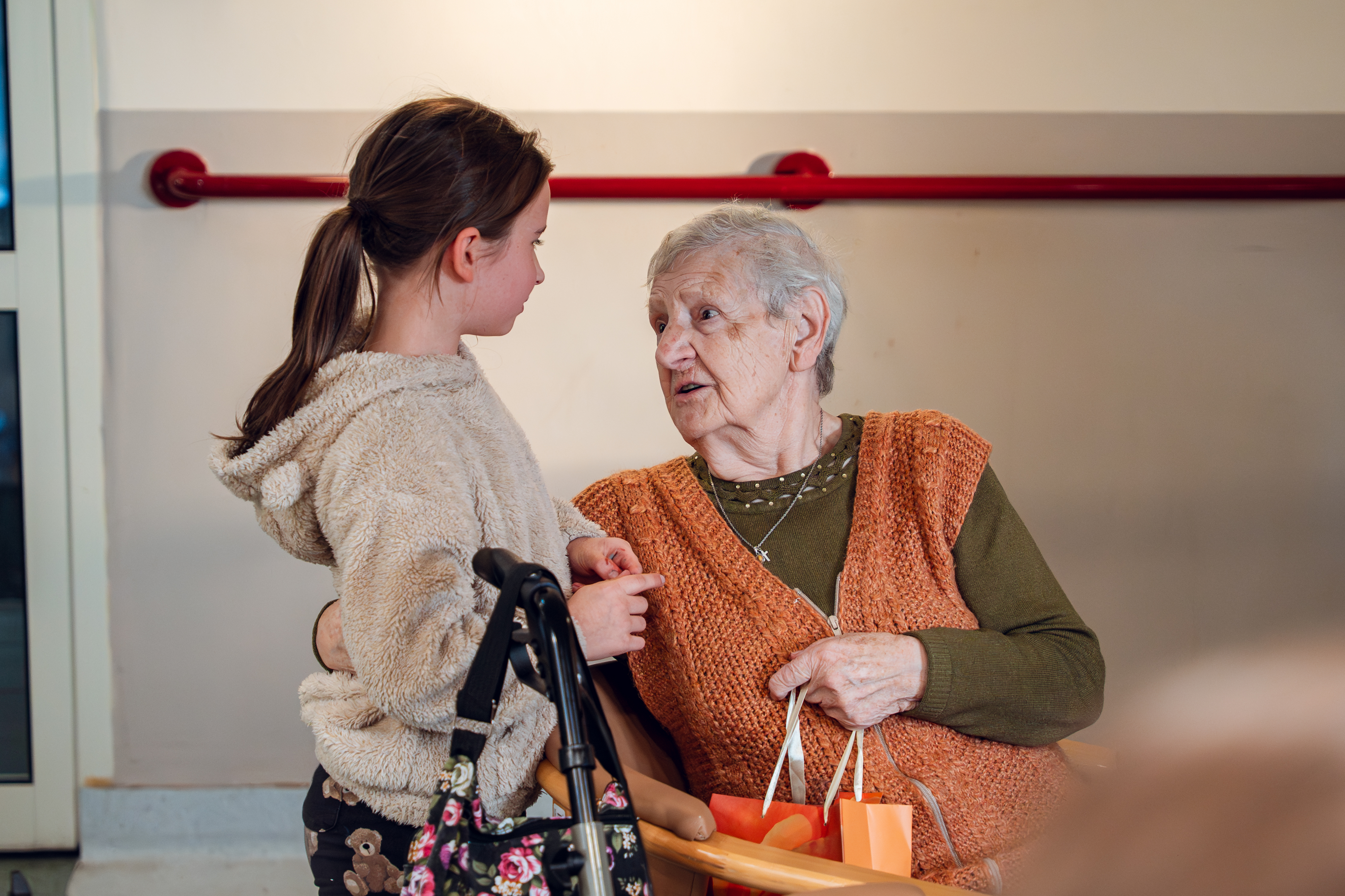 Młodzież w wieku 10–12 lat po warsztatach z komunikacji odwiedza samotnych, często schorowanych seniorów w ich domach.
