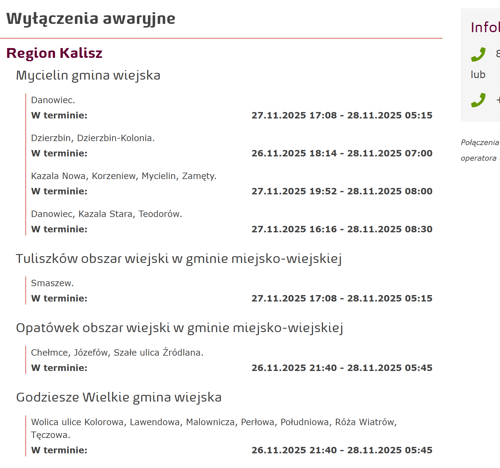 Energa zapewnia, że pogotowie energetyczne pracuje nieustannie od momentu wystąpienia pierwszych awarii, tj. noc z 26 na 27 listopada. Jednak masowość zjawiska i trudny dojazd do niektórych lokalizacji sprawia, że termin naprawy awarii wydłuża się.