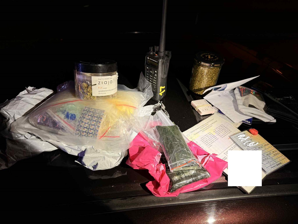 - W samochodzie znajdowały się m.in.: marihuana – 68,79 g, biała substancja sypka – 50,75 g, 49 tabletek ekstazy, substancja krystaliczna kremowa – 101,02 g, substancja krystaliczna biała – 363,34 g, substancja krystaliczna zielona – 25,06 g, substancja krystaliczna niebieska – 3,77 g, substancja krystaliczna szara – 29,86 g, granulat żółty – 255,90 g, 63 znaczki LSD, 33 tabletki opioidowe, substancja smolista czarna – 7 g – wylicza krotoszyńska policja.