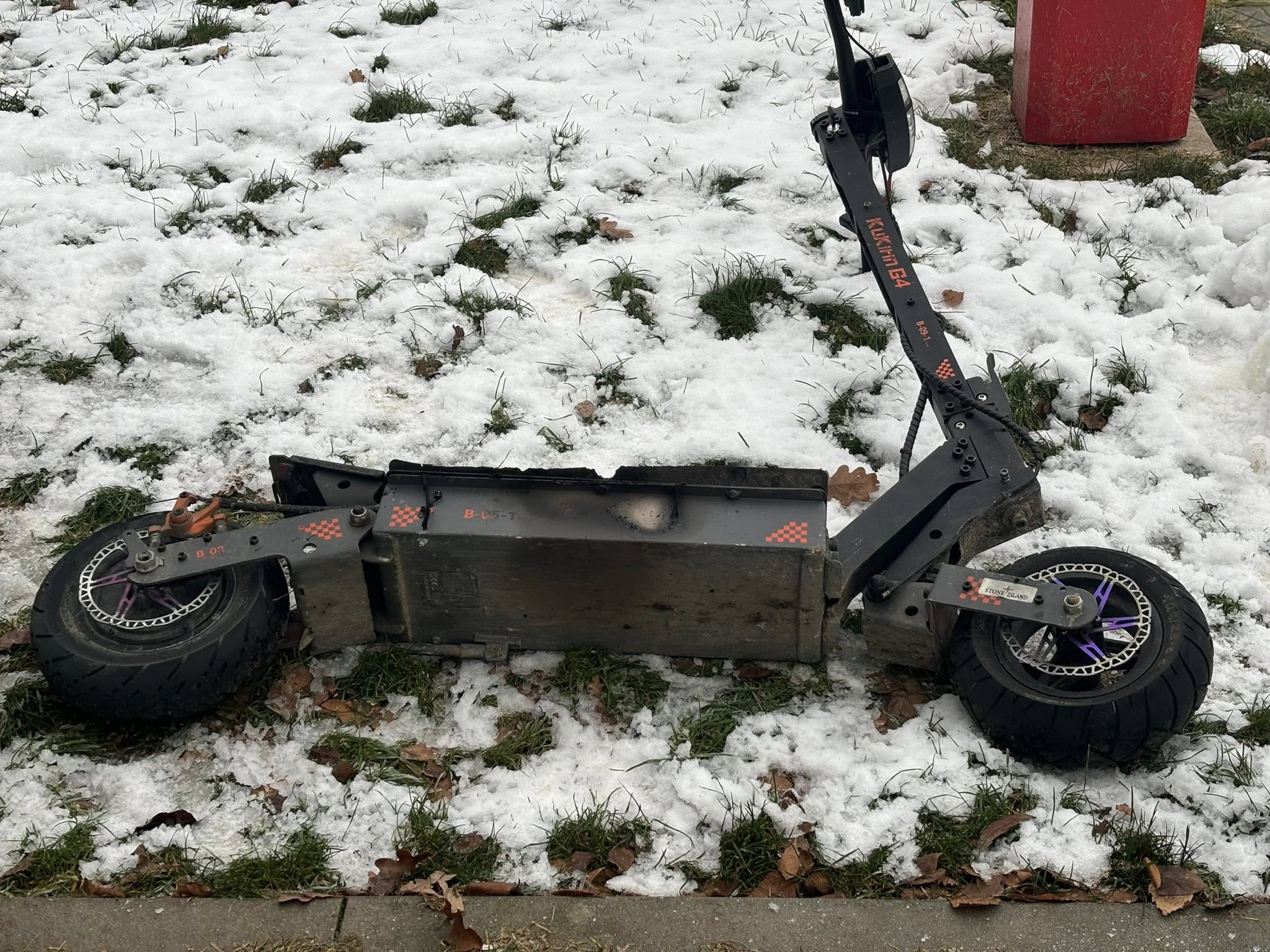 Podczas działań zlokalizowano nadpaloną hulajnogę elektryczną znajdującą się w ciągu komunikacyjnym, w której doszło do zapalenia baterii litowo-jonowej.