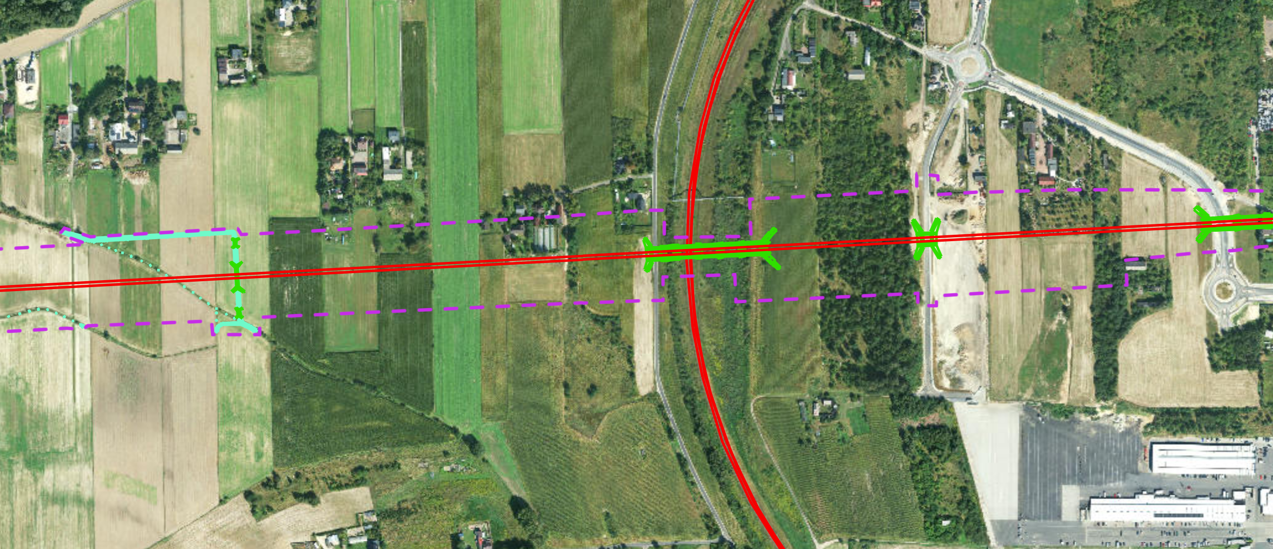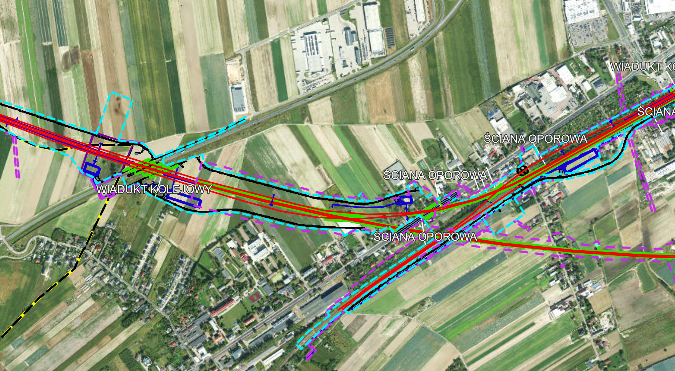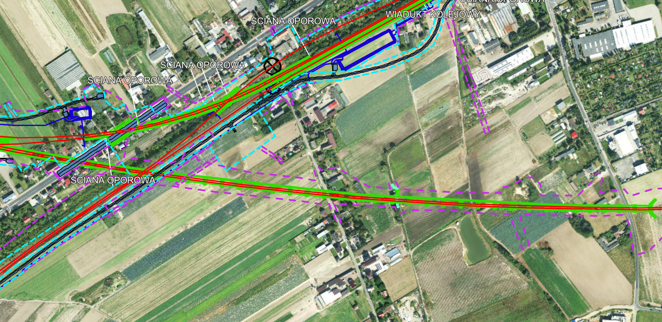 - przebieg linii kolejowej powyżej poziomu terenu– na obiektach inżynieryjnych i nasypie,