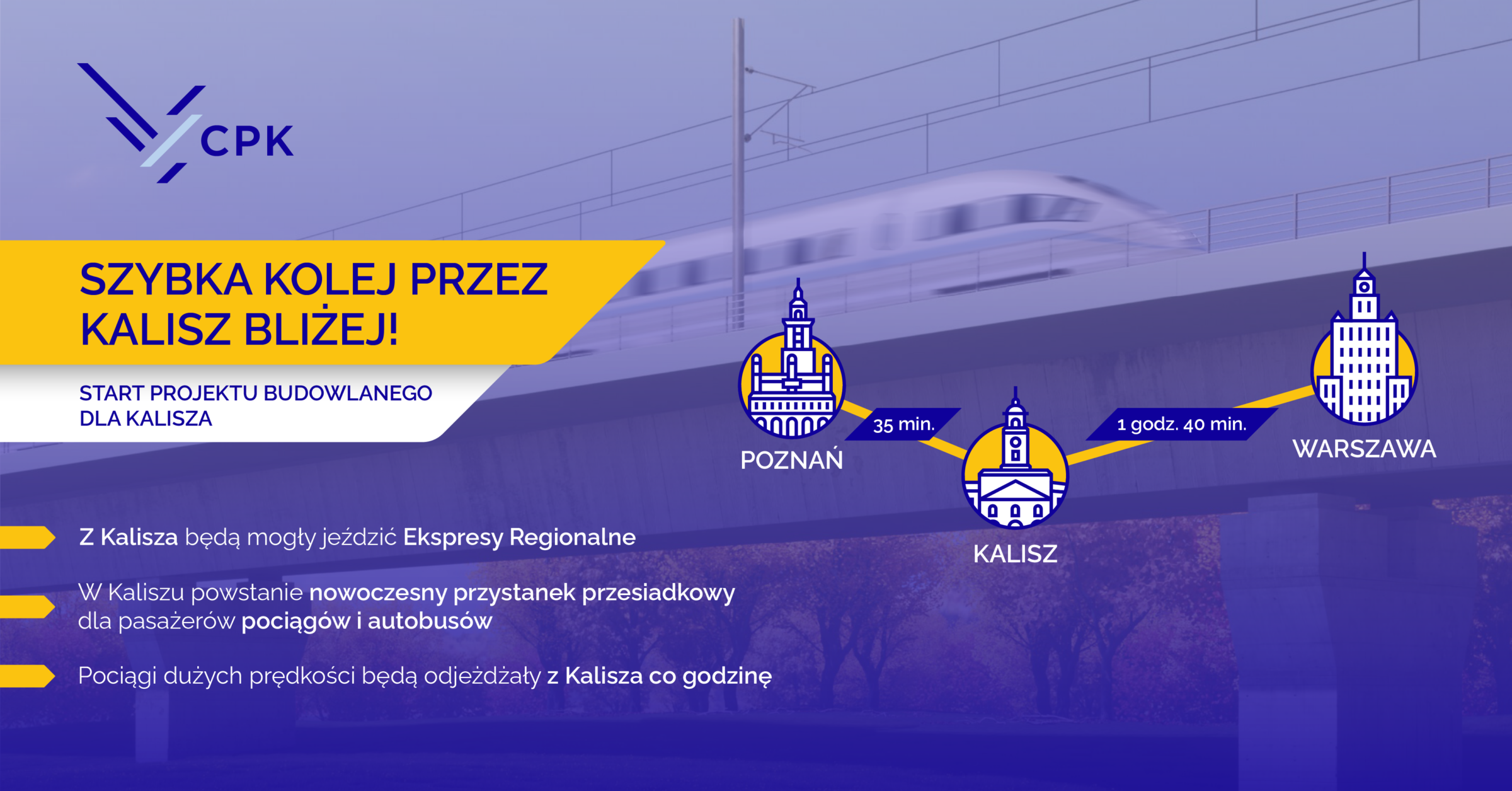 CPK informuje, że inwestycja ta zapewni wzrost ruchu pasażerskiego w Kaliszu i doda miastu wiele nowych, szybkich połączeń.