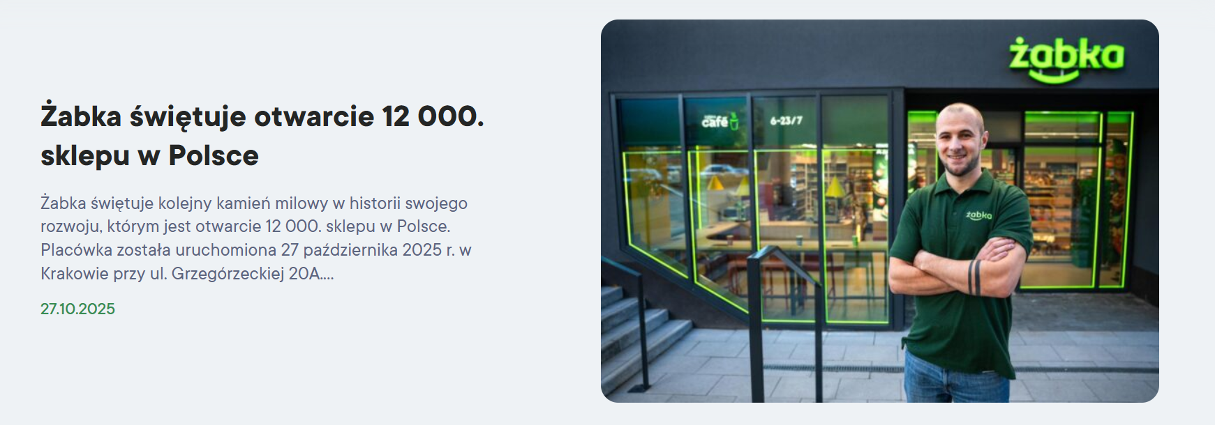 Otwarcie 12 000. sklepu ma dla nas ważne znaczenie symboliczne, które dowodzi, że nasz model convenience odpowiada na oczekiwania współczesnych klientów i naszych franczyzobiorców. To dowód konsekwentnej realizacji strategii, dzięki której dziś znajdujemy się u progu jeszcze większego przyspieszenia naszego rozwoju. Na początku października zadeklarowaliśmy, że do 2028 roku będziemy rocznie otwierać 1300 sklepów – mówi Adam Manikowski, CEO jednostki biznesowej Żabka Polska. – Żabka to dziś znacznie więcej niż sklep. To miejsce spotkań, a nowa krakowska placówka jest przykładem innowacji, które wdrażamy w odpowiedzi na konkretne potrzeby naszych konsumentów – dodaje.