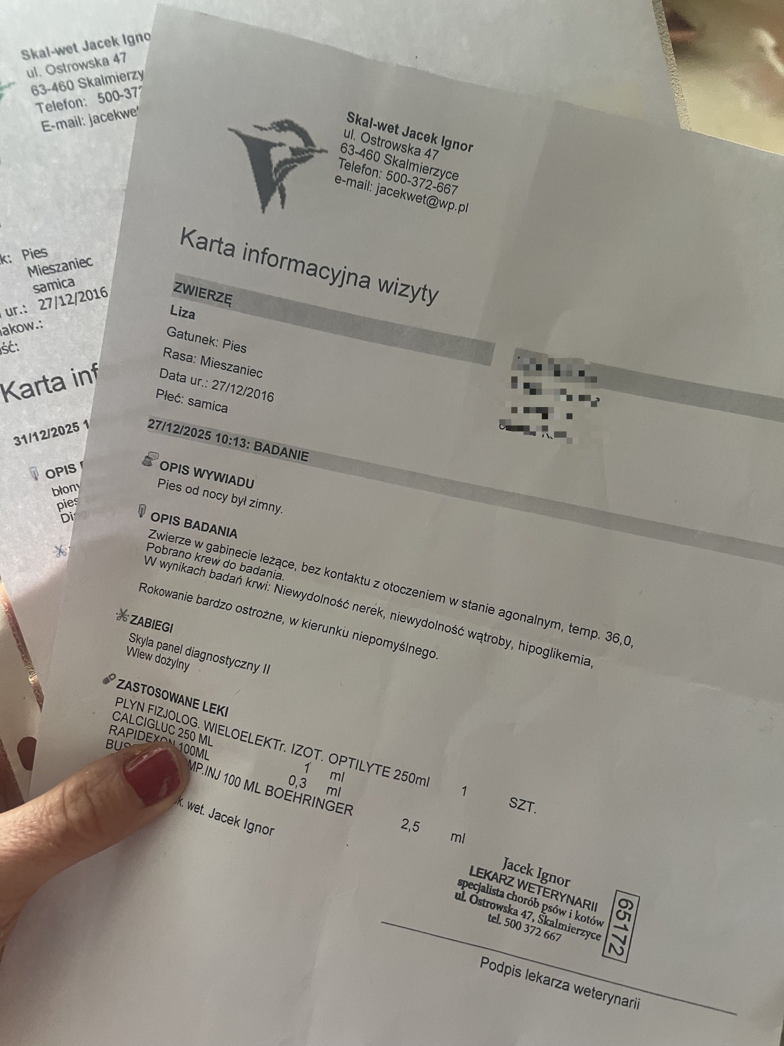 Dokumentacja weterynaryjna wskazuje na poważne zaburzenia pracy narządów wewnętrznych, co może świadczyć o zatruciu. Na ten moment nie wiadomo, jaka substancja mogła zostać użyta ani w jakich dokładnie okolicznościach doszło do zdarzenia.