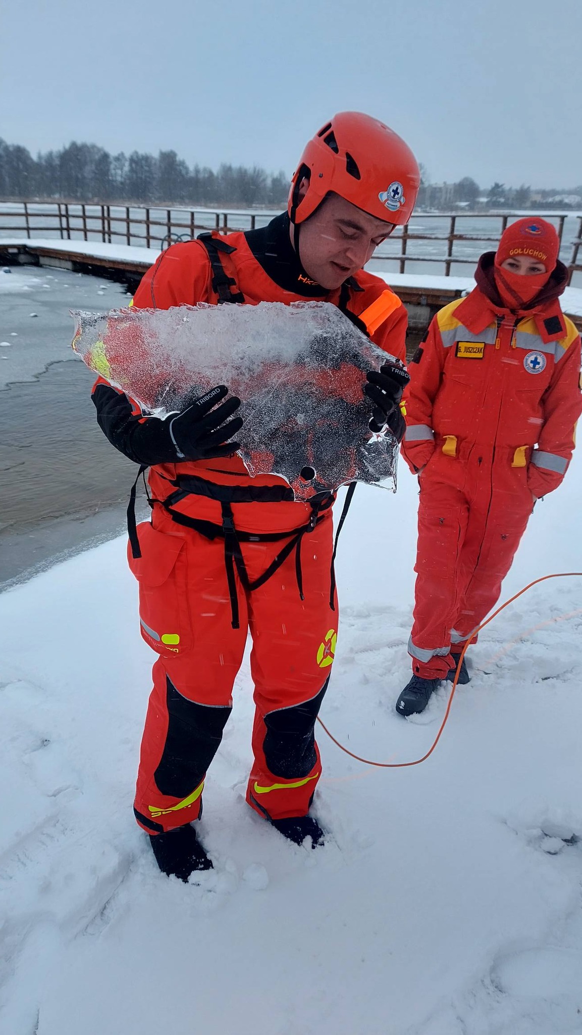 Z ich ustaleń wynika, że tafla lodu na zbiorniku jest niestabilna i nieregularna. Przy brzegu może wydawać się bezpieczna, ale w innych miejscach jest znacznie gorzej.