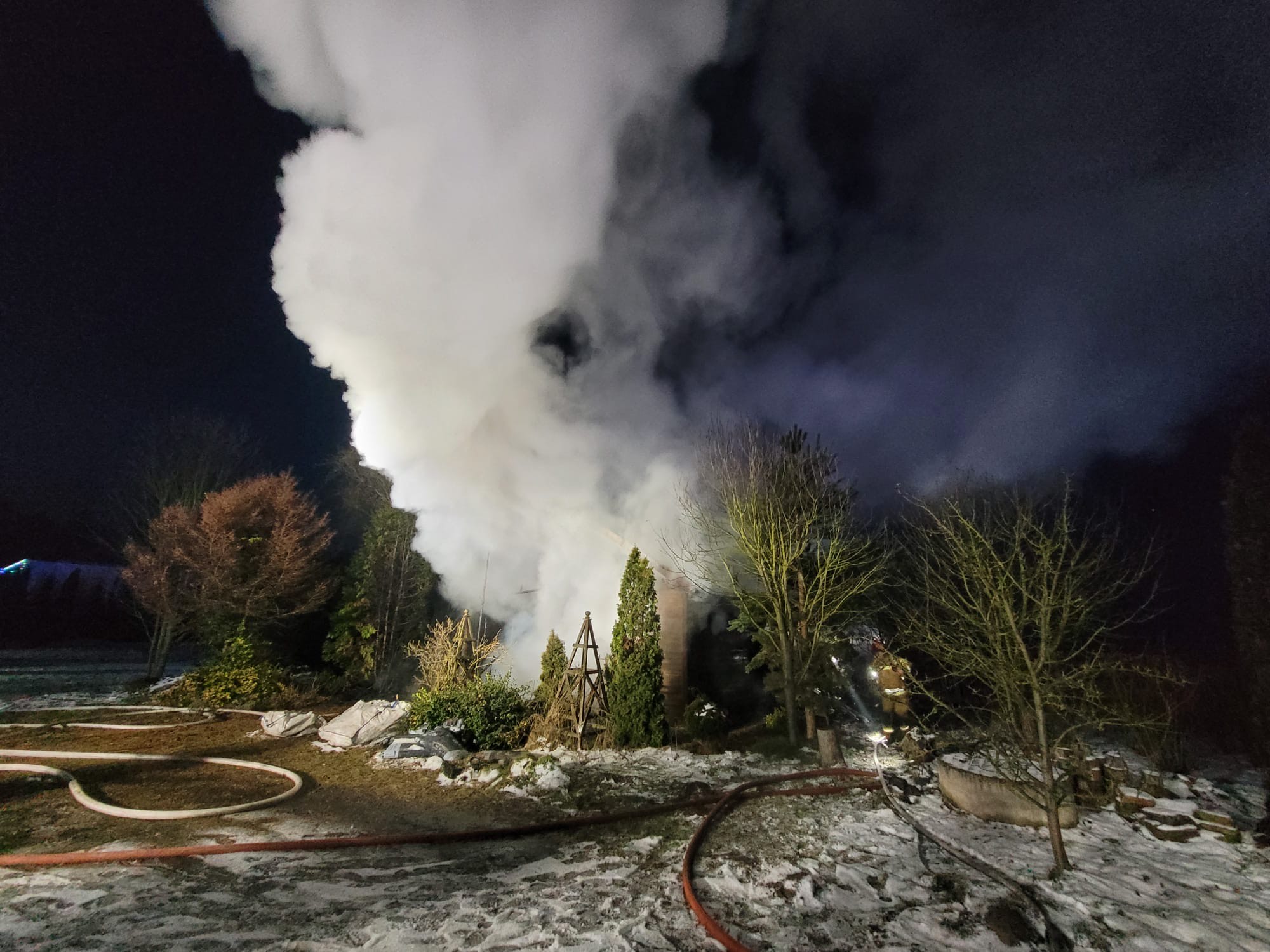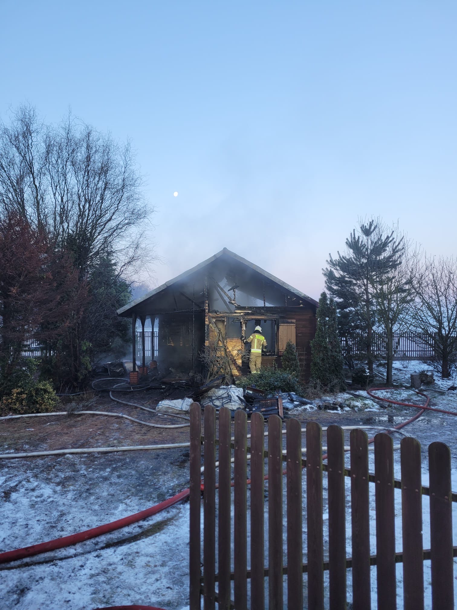 - Rozwinięty pożar domku letniskowego, poza obiektem znajdowała się jedna osoba, która z oparzeniami ciała trafiła do szpitala. Strażacy podali prądy wody, dokonali prac rozbiórkowych budynku w celu usunięcia wszelkich zarzewi ognia – mówi mł. Kpt. Piotr Jasiński z PSP Kalisz.