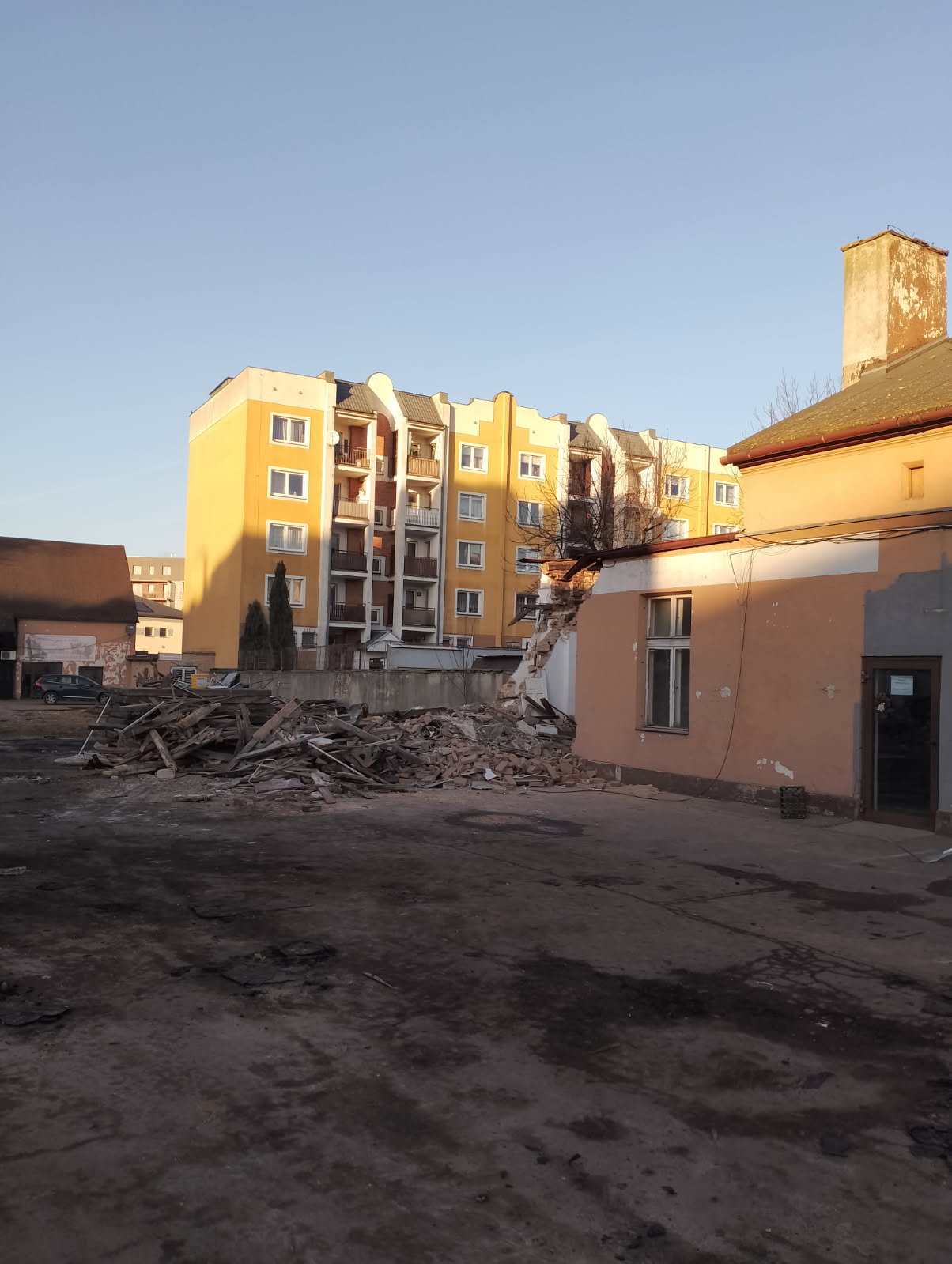 Na działce przy ul. 3 maja 8 w Kaliszu powstać ma market Dino. W tej chwili znajduje się tam kilka starych budynków, m.in. obiekt po dawnym zakładzie mięsnym. Ciężki sprzęt rozpoczął już rozbiórkę. Problem w tym, że w rozbieranym kompleksie nadal żyje lokator.