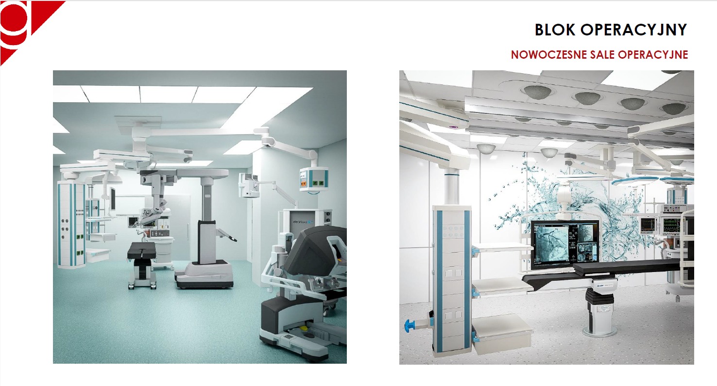 Blok będzie dysponował 8 salami operacyjnymi, w tym: 3 salami standardowymi, 2 salami hybrydowymi, 3 salami przeznaczonymi do zabiegów robotycznych.