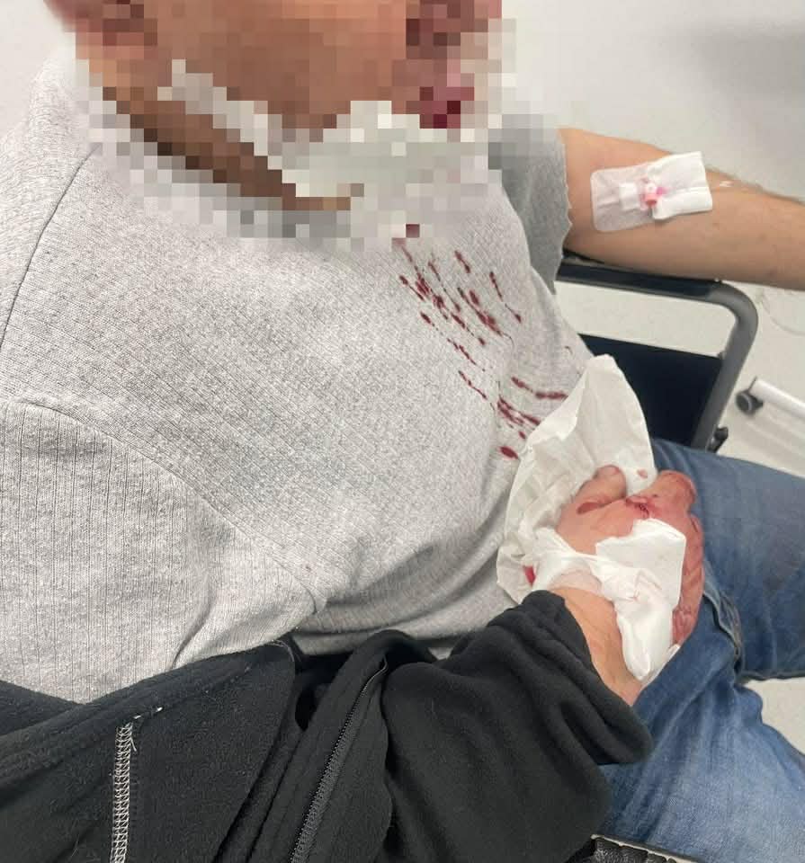 Tata na obu dłoniach ma rany głębokie od zębów i szarpania psów, jeden z psów (samiec, bo drugi to była suczka) złapał i ugryzł tacie szczękę z dolną wargą. Ogólnie jest cały obity, walczył z nimi, póki nie miał szansy ucieczki.