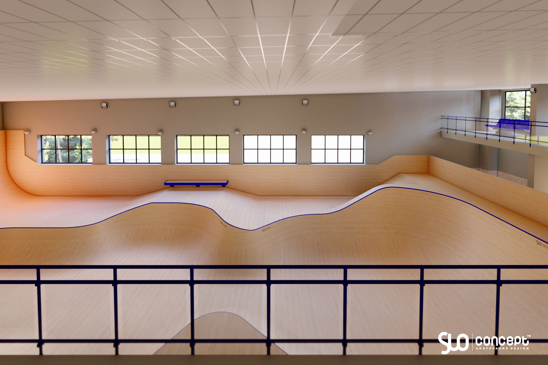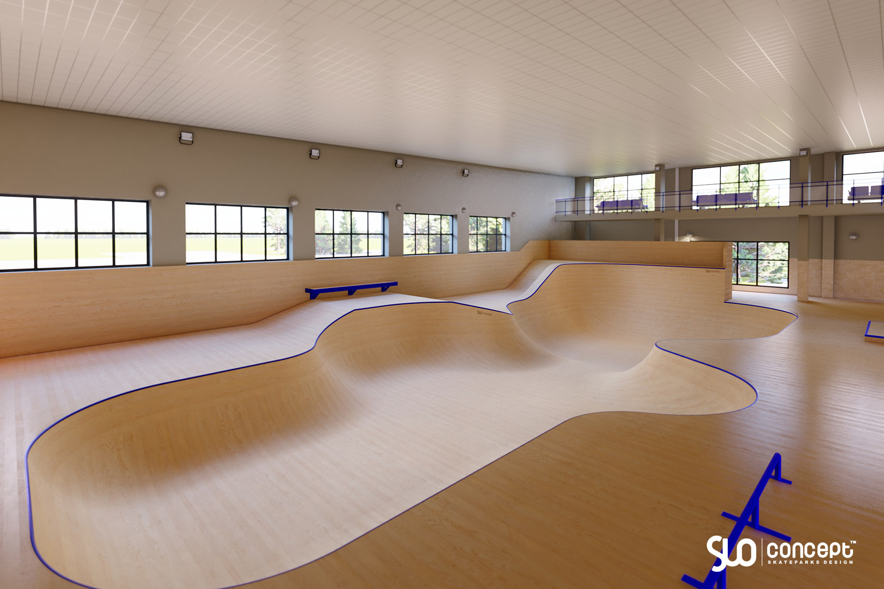 W niecce basenu pływackiego powstanie bowl, czyli specjalne zagłębienie na trzech poziomach: 1,35 m, 2 m, 3,5 metra. W wyposażeniu uwzględniono: wall ride, funbox, bank ramp oraz dwa elementy mobilne: grindbox i rurkę.