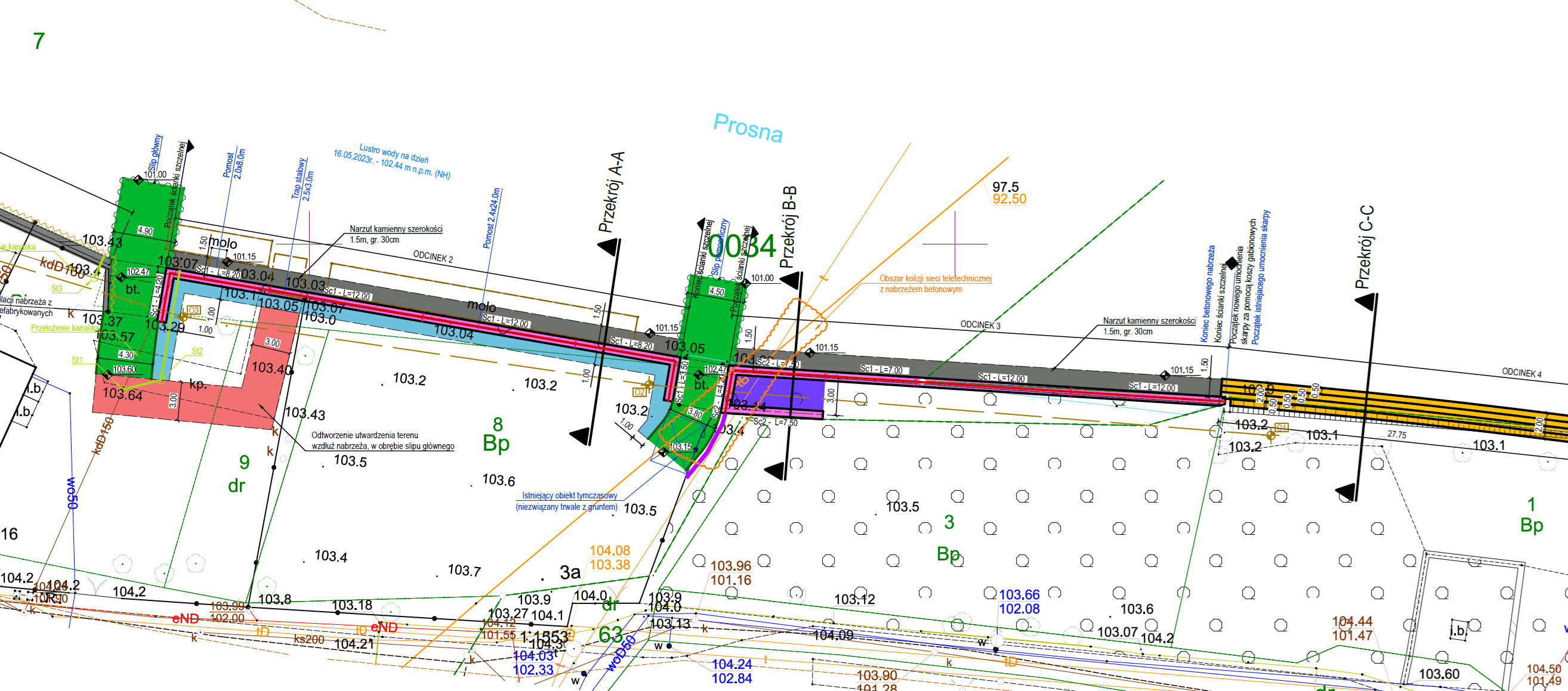 Na dalszym odcinku Prosny odtworzona zostanie konstrukcja oporowa nabrzeża. Odbudowana będzie balustrada wzdłuż rzeki, wzmocniona skarpa koszami wypełnionymi kamieniami.