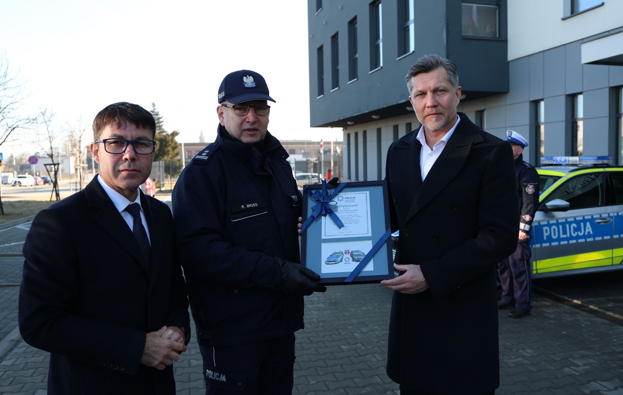 Nowe auta zostały oficjalnie przekazane funkcjonariuszom przed budynkiem Komendy Miejskiej Policji w Kaliszu. W wydarzeniu uczestniczyli Krystian Kinastowski, prezydent Kalisza, oraz Mateusz Podsadny, wiceprezydent miasta.