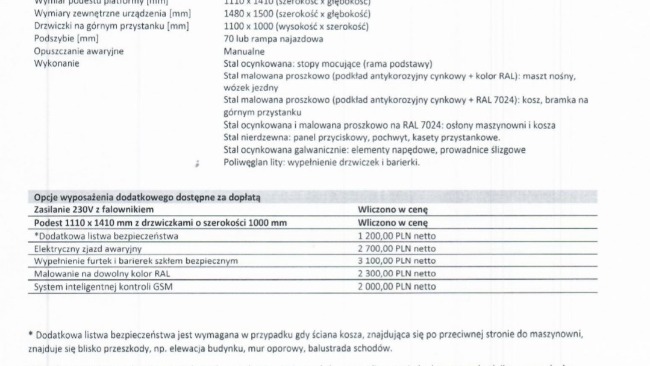 Poniżej zdjęcia kosztorysu nowej windy.