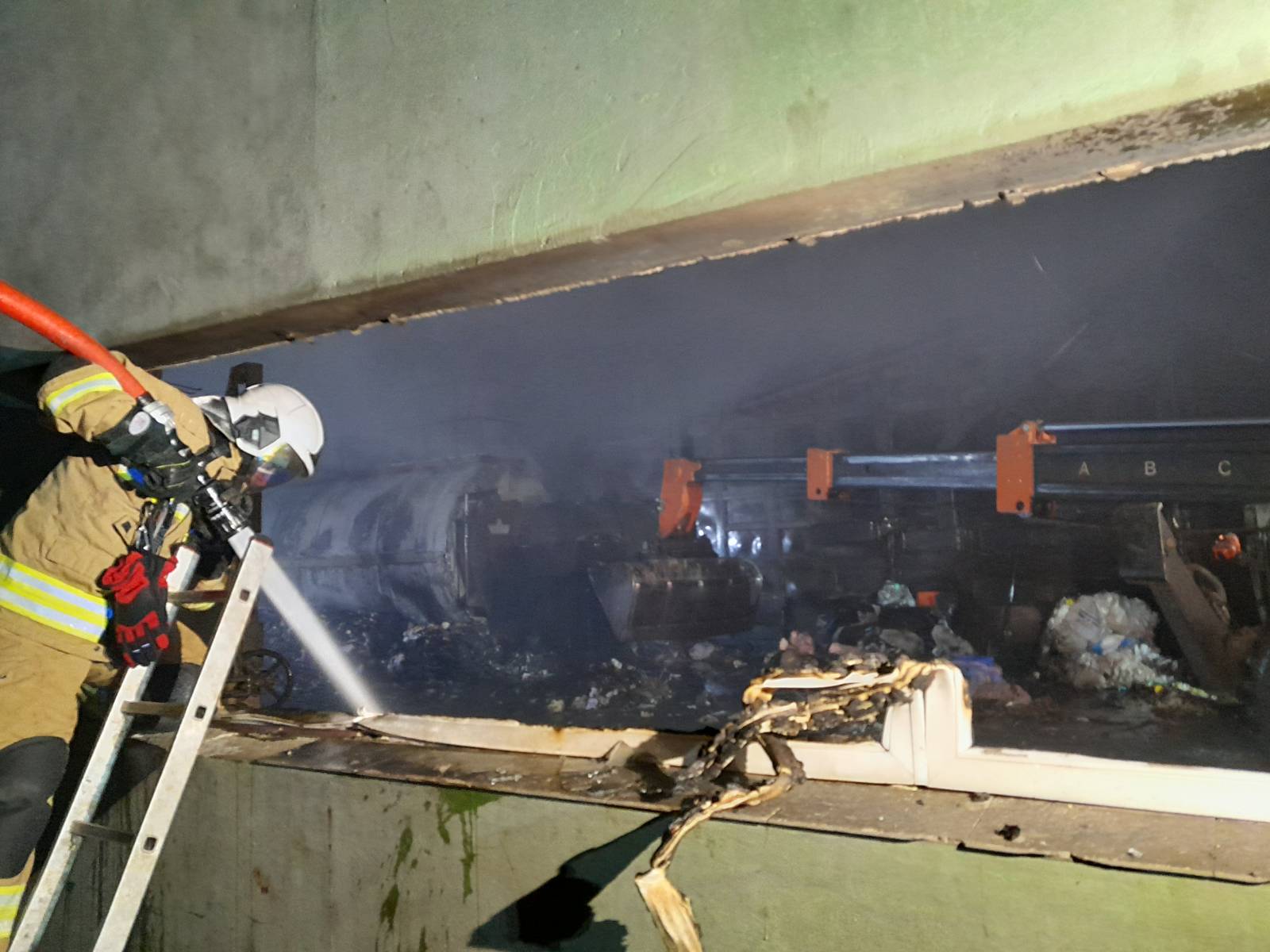 Po przybyciu na miejsce strażacy zabezpieczyli i oświetlili teren działań. Ratownicy rozpoczęli gaszenie, podając wodę do wnętrza obiektu oraz obronę dachu, sąsiednich hal.