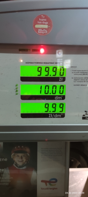 Krótkotrwały skok cen - 24 lutego 2022, część stacji sztucznie zawyżała ceny paliw, by zarobić na przestraszonych kierowcach