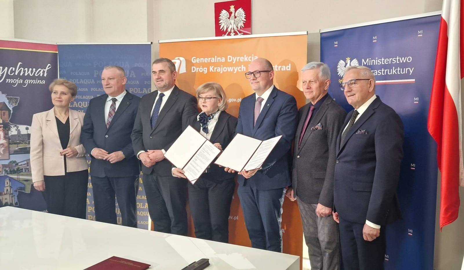 Umowę Generalna Dyrekcja Dróg Krajowych i Autostrad z wykonawcą, firmą POLAQUA podpisała w Rychwale, bo właśnie tam rozpoczynać się będzie odcinek, którego dotyczy ten kontrakt.