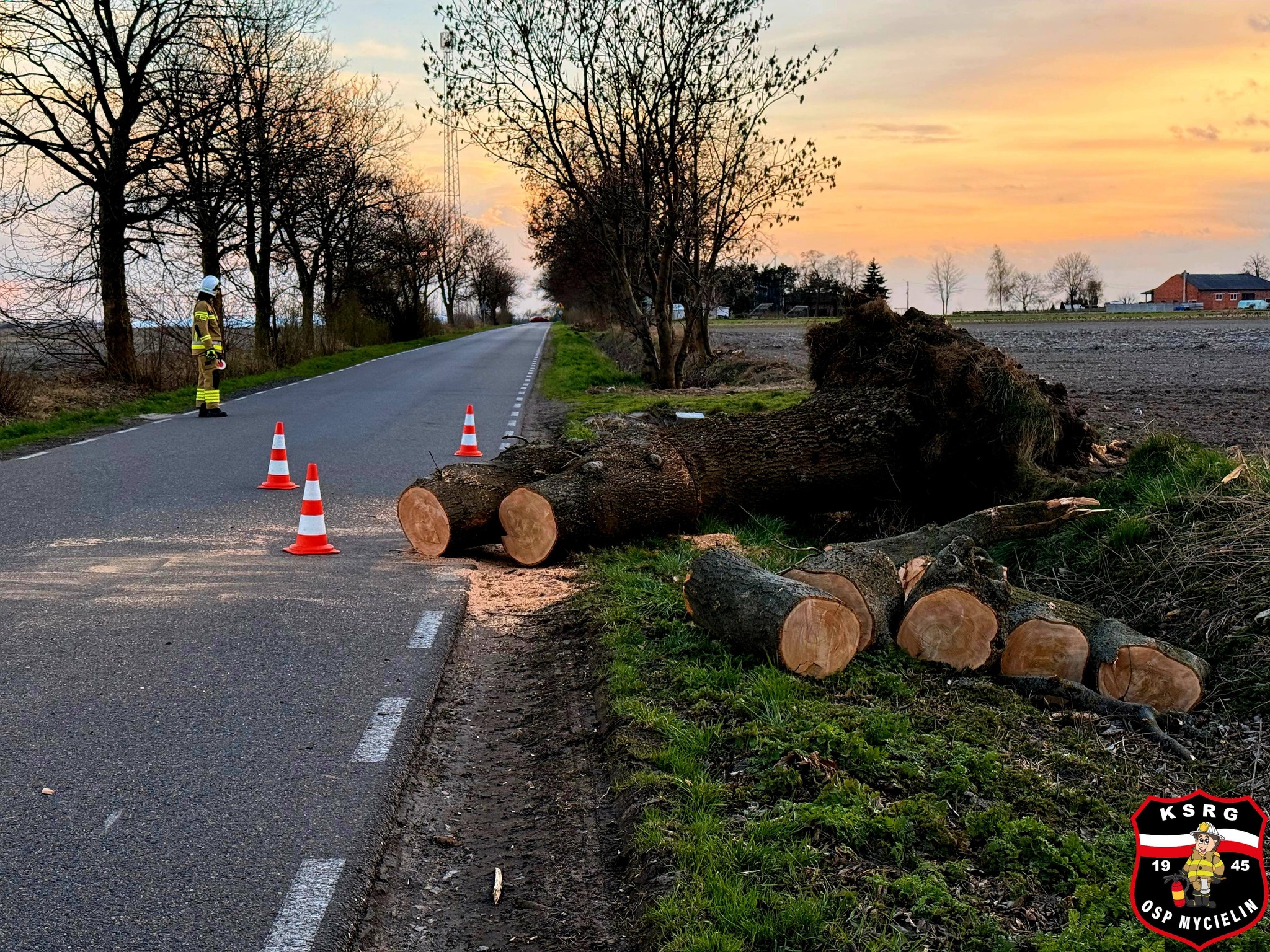 Druhowie z OSP Mycielin usuwali m.in. powalone na drogę drzewo