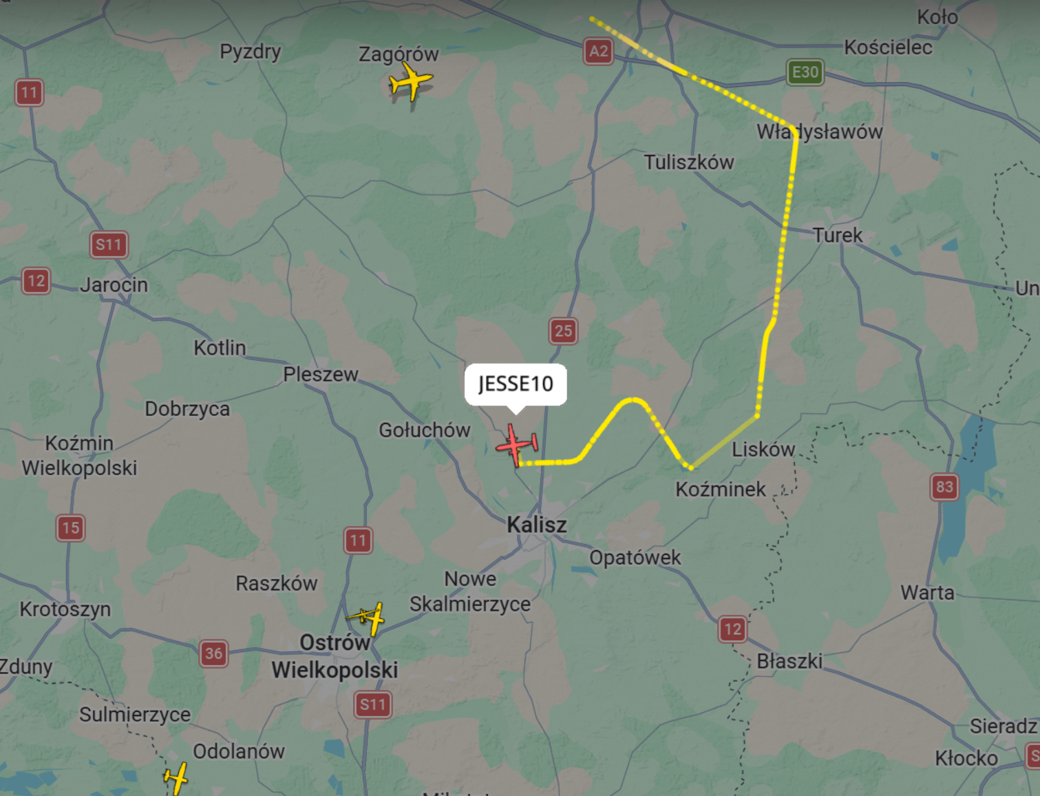 Duży wojskowy samolot krążył nad regionem. W okolicach Kalisza pojawił się pierwszy raz około 13:30, potem widziany był jeszcze przed 15:00 w okolicach Koźminka. Ustaliliśmy, że obiekt ten wykonywał kilka dużych okrążeń od Konina, przez Turek, Kalisz, Pleszew, okolice Pyzdr i znowu w okolice pojezierza konińskiego. Duża maszyna leciała dość nisko, co zwróciło uwagę wielu osób.