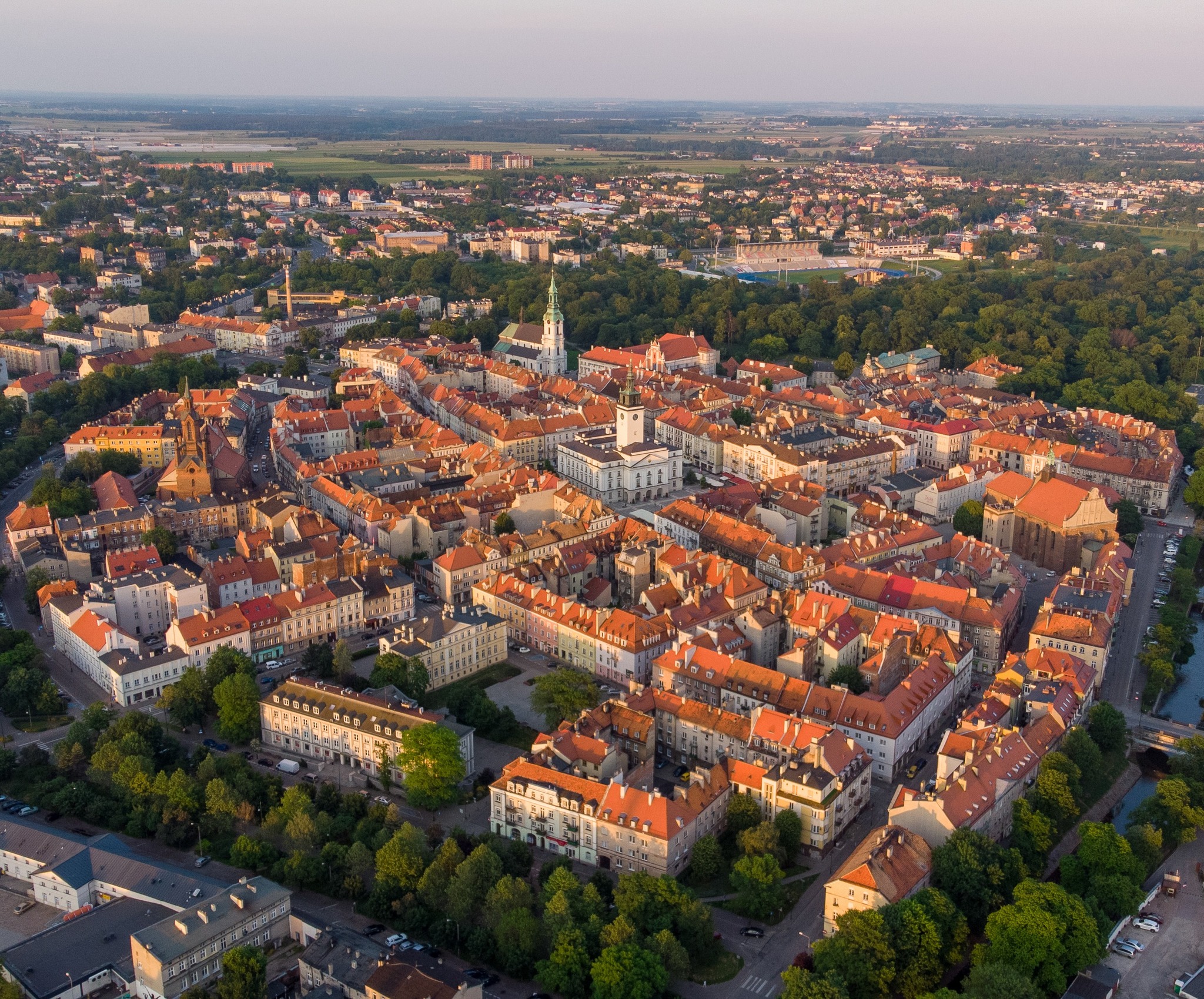Ratusz wyraźnie góruje nad zabytkową zabudową Śródmieścia, fot. P. Kowalski, grupa FB Kalisz by drone