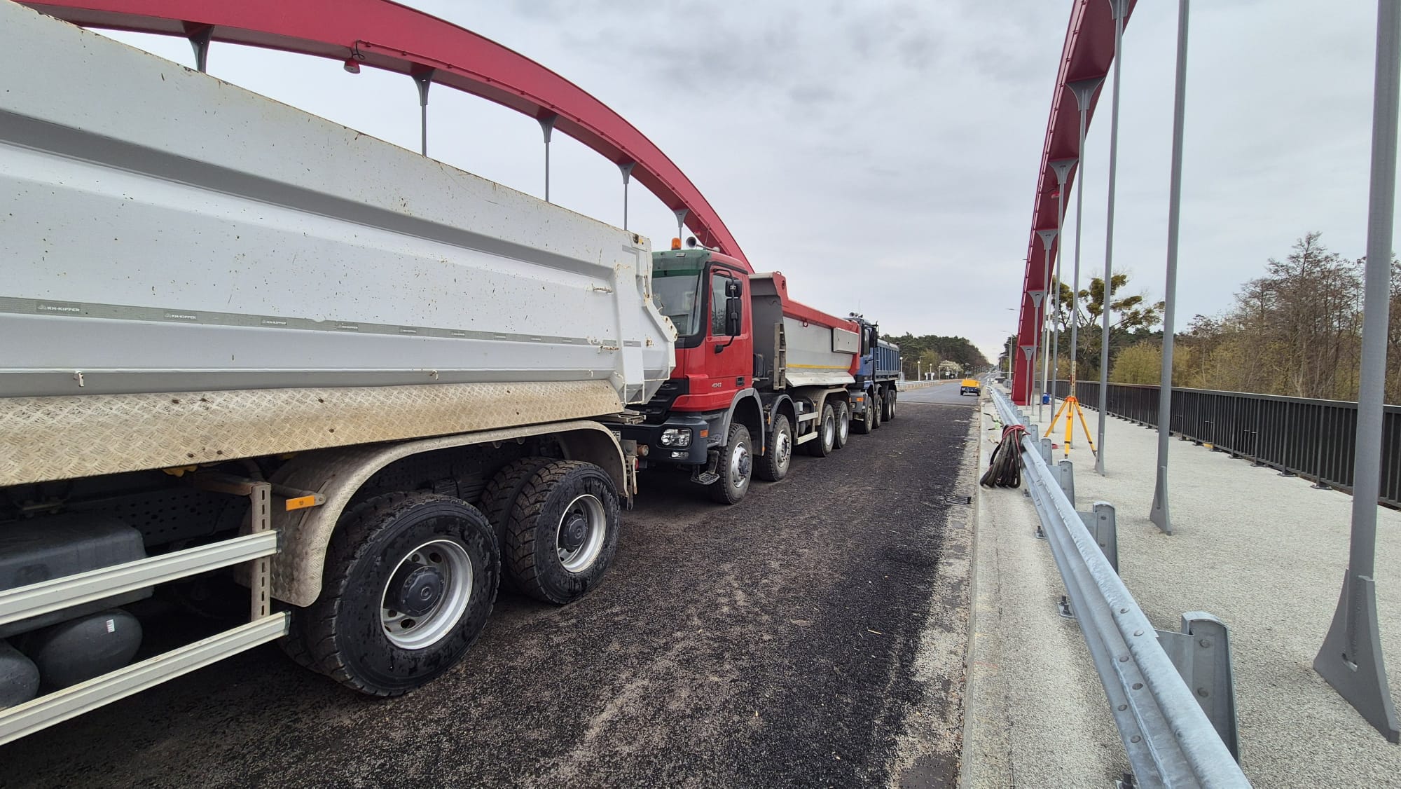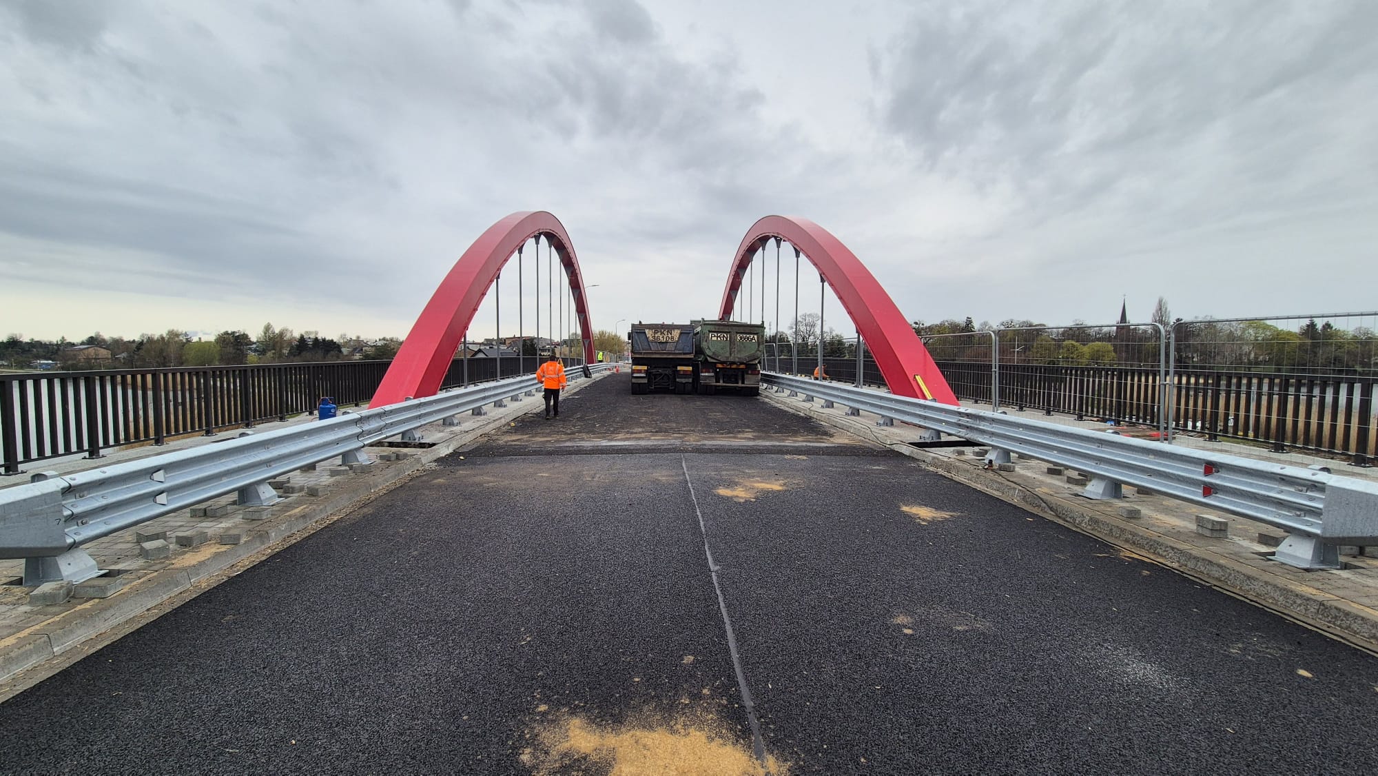 Nowy most ma długość 64 metrów, z daleka widoczne są jego czerwone przęsła, które utrzymują całą konstrukcję, jezdnia będzie mieć szerokość 7 metrów. Dodatkowo będzie bezpieczne miejsce dla pieszych i rowerzystów, bo tamtędy spaceruje wielu turystów. Z mostu bowiem rozciąga się widok na dwa znane jeziora. Konstrukcja mostu jest już gotowa, przeprawa przeszła pierwszy ważny test.