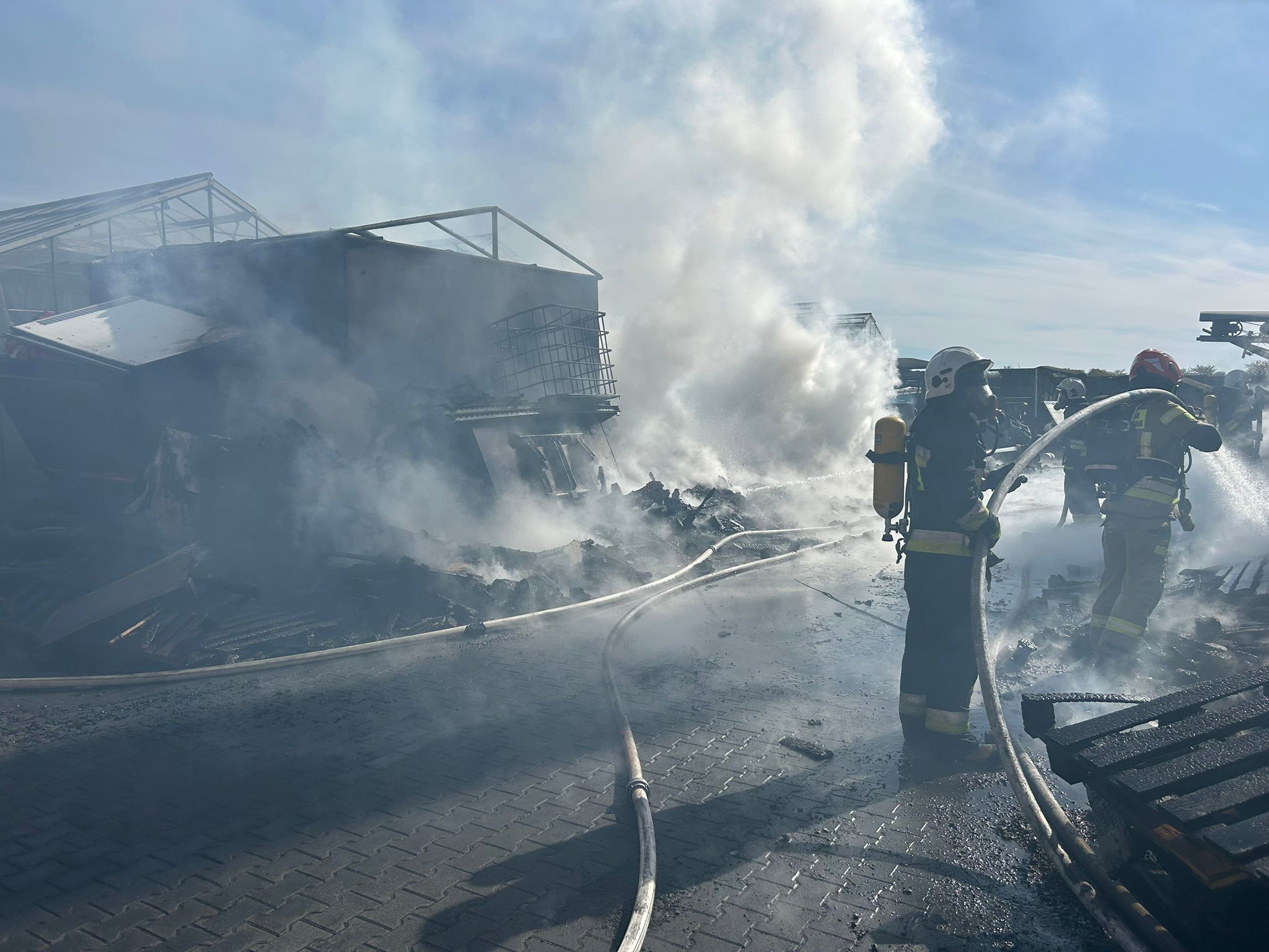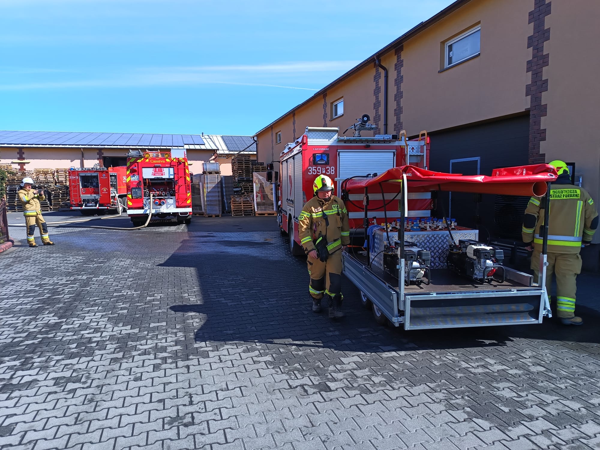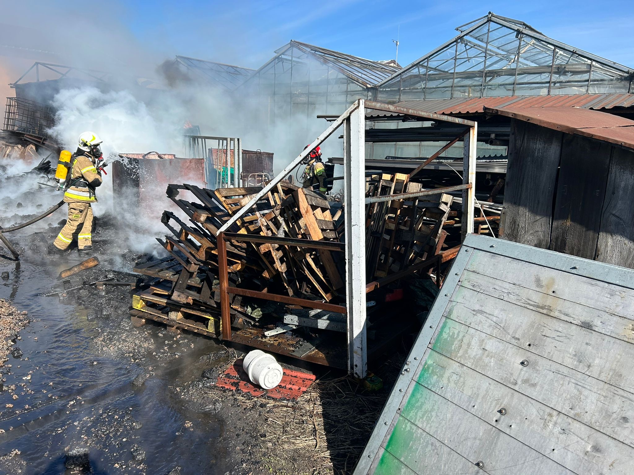 Na miejsce zostało zadysponowane 6 zastępów OSP oraz 5 zastępów PSP. Spaleniu uległo ok. 200 szt. palet składowanych przy budynku gospodarczym na pow. ok. 300m2.