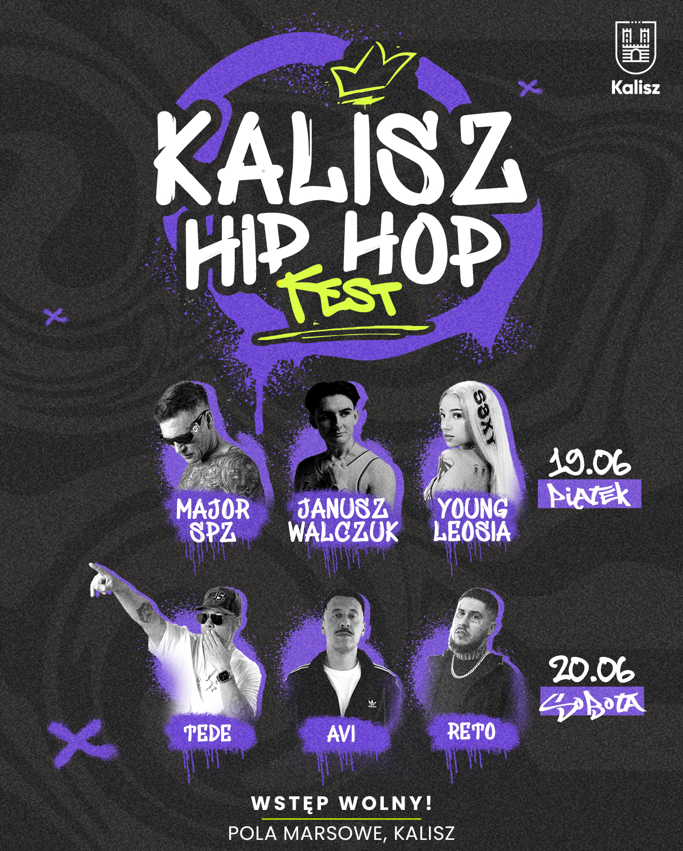 Na scenie pojawi się czołówka polskiej sceny hip-hopowej. Wśród artystów, którzy zagrają dla kaliskiej publiczności, są m.in. Major SPZ, Janusz Walczuk, Young Leosia, Tede, Avi oraz ReTo.