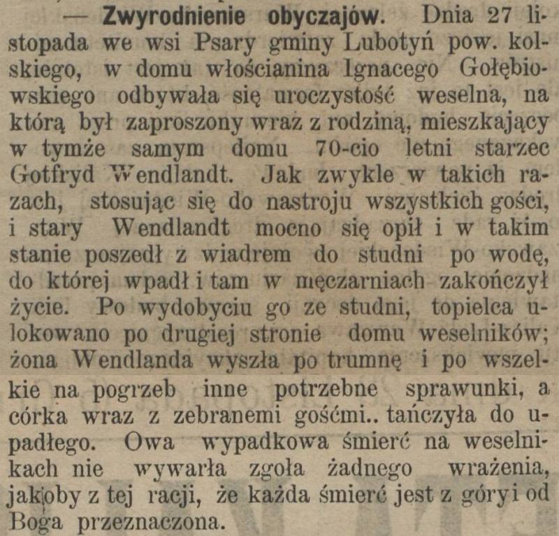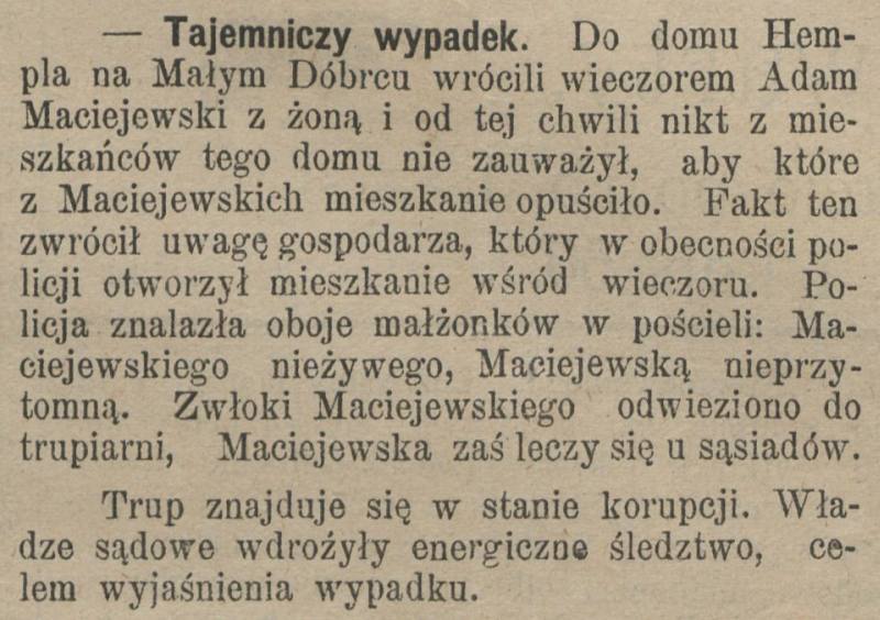 Poniżej kolejna z mrocznych historii, tym razem z Dobrzeca z 1901 roku...